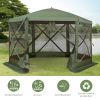 Outsunny 6-Sided Hexagon Pop Up Party Tent Gazebo with Mesh Netting Walls & Shaded Interior, 12' x 12', Green